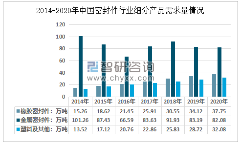 從細分需求來看,2020年我國橡膠密封件需求量37.75萬噸;金屬密封件需求量82.08萬噸;塑料及其他密封件需求量32.08萬噸。