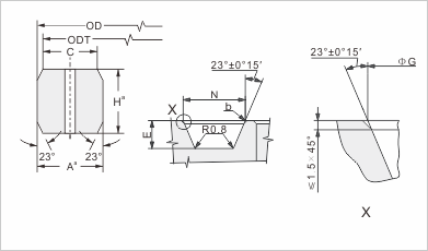 一個壓力通道孔要求每環中心線*寬度* *和高* H * 0.008inches加公差是允許的。只要寬度或高度的變化在整個圓周上不超過0.004英寸